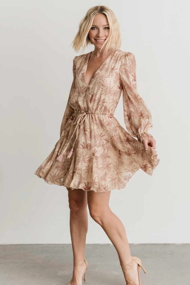 AK Dresses Saylor Ruffle Mini Dress | Beige Print