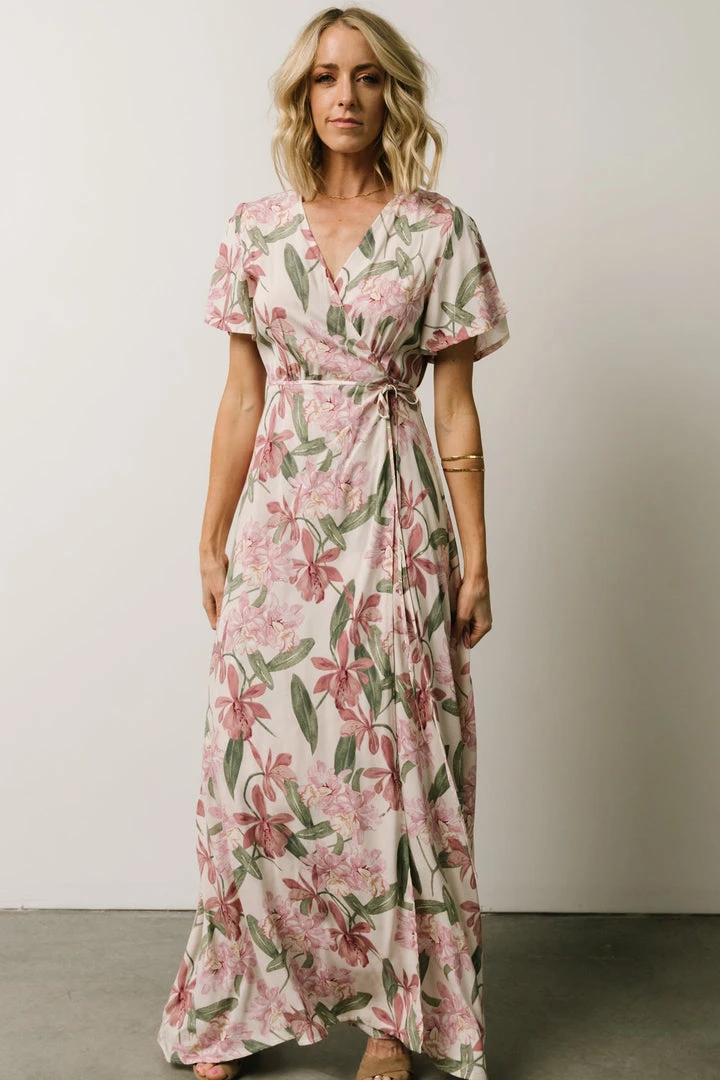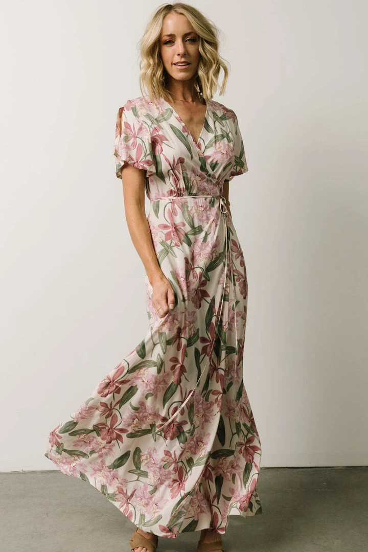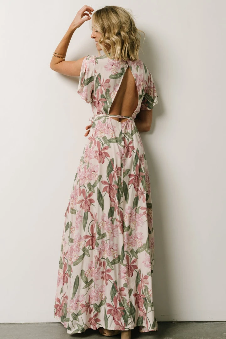 AK Eartha Open Back Wrap Dress | Orchid Floral Dresses