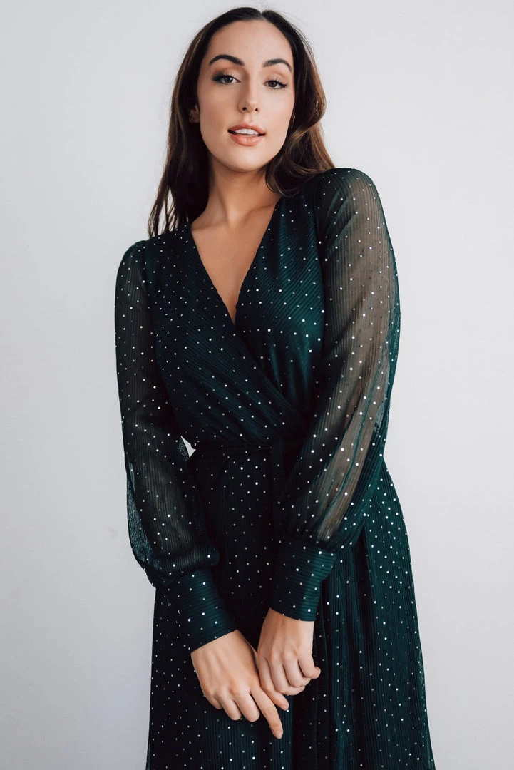 - Emerald green with gold sequins throughout