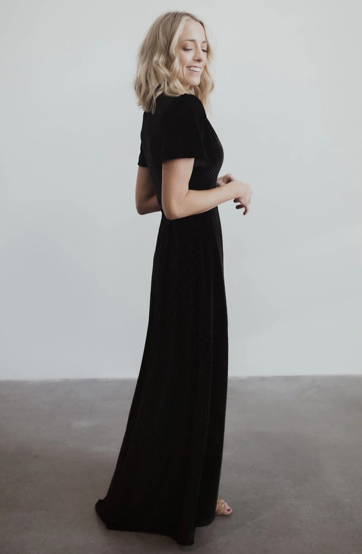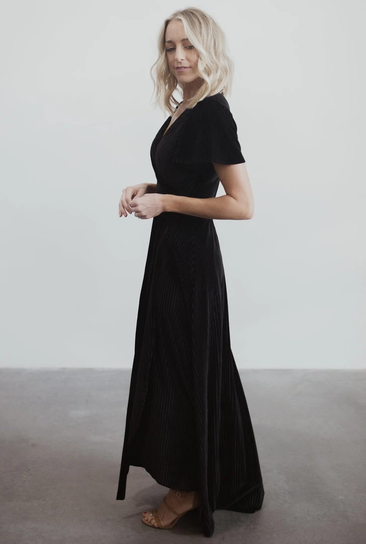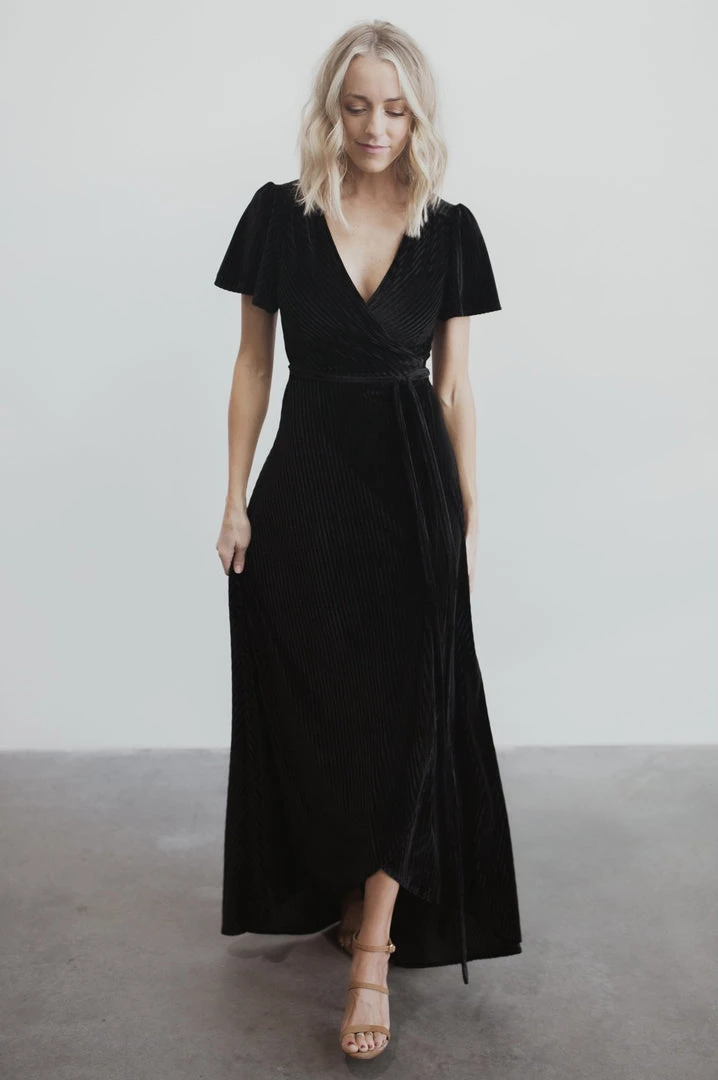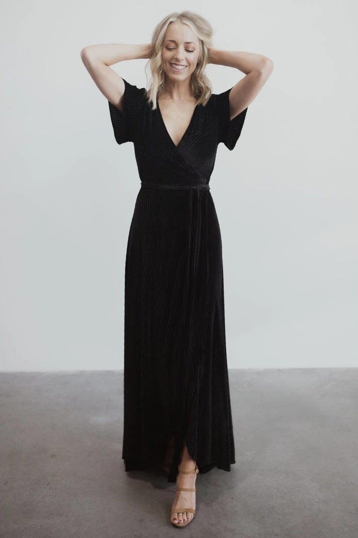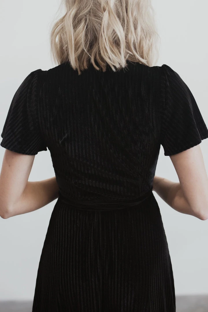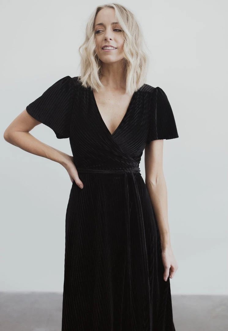 BB Custom Andi Ribbed Velvet Wrap Dress | Black