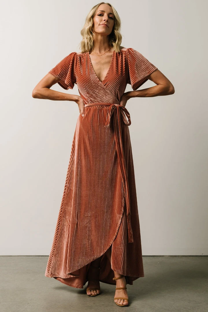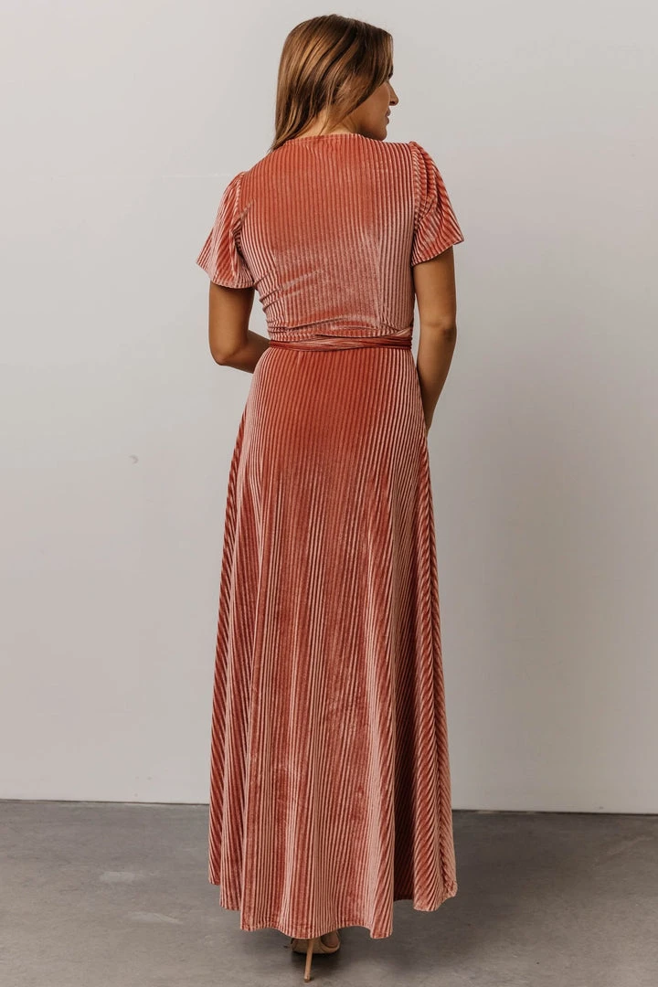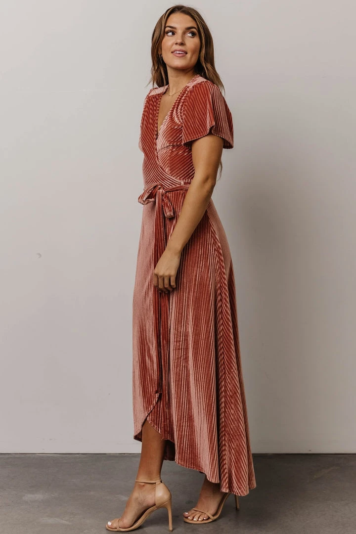 BB Custom Andi Ribbed Velvet Wrap Dress | Cherry Blossom