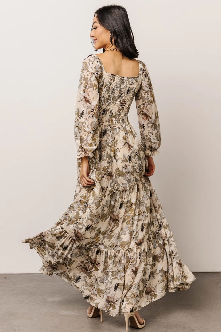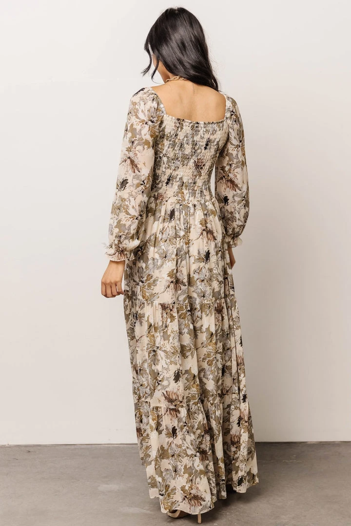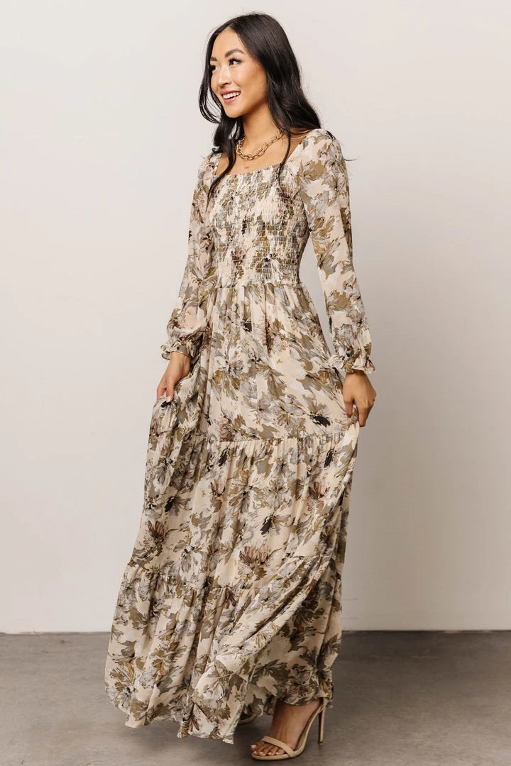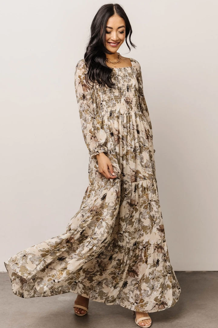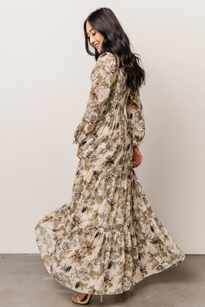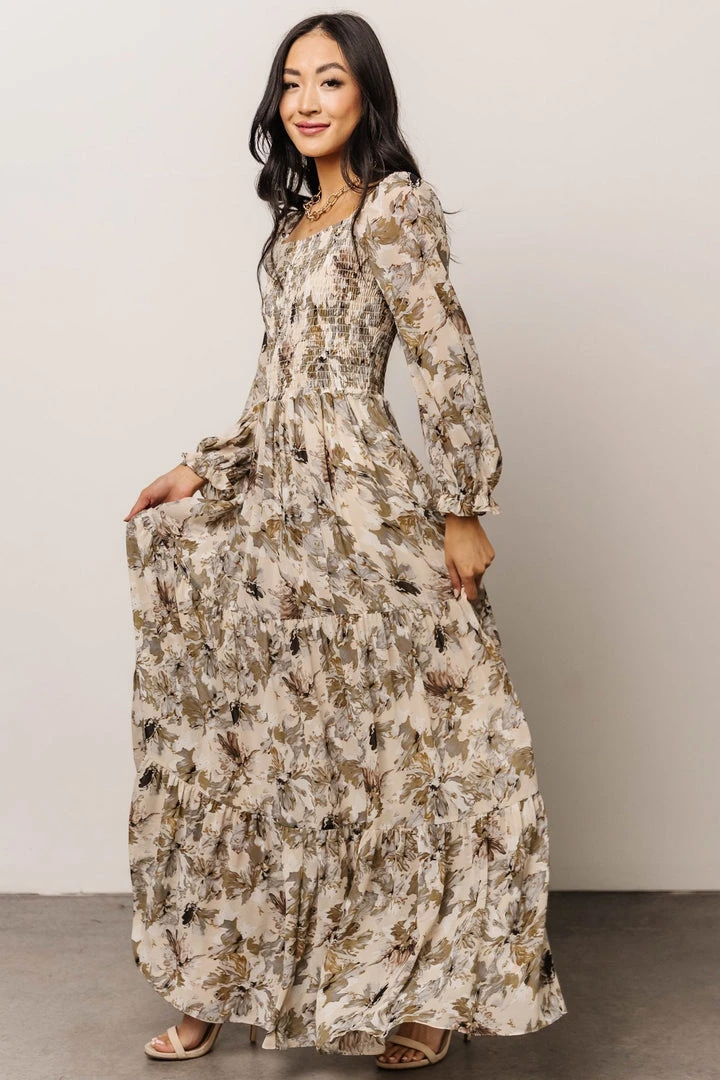 BB Custom Angelica Smocked Maxi Dress | Olive Floral Dresses