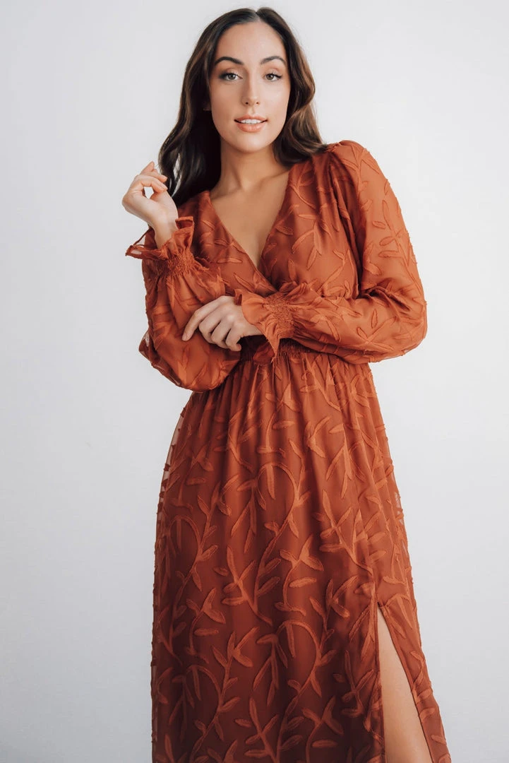 - Gorgeous, rust colored flowing burnout, textured materialÂ