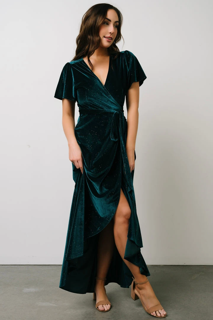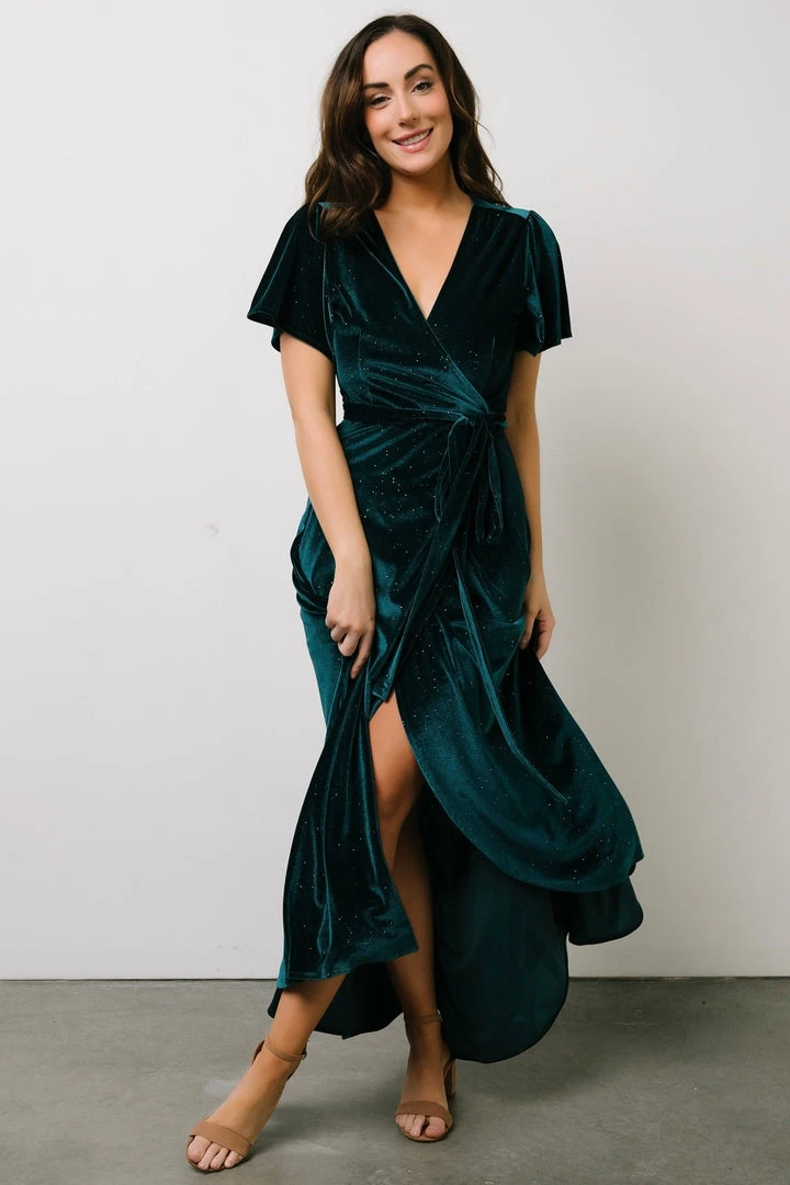 BB Custom Dresses Calvin Sparkle Velvet Wrap Dress | Jade