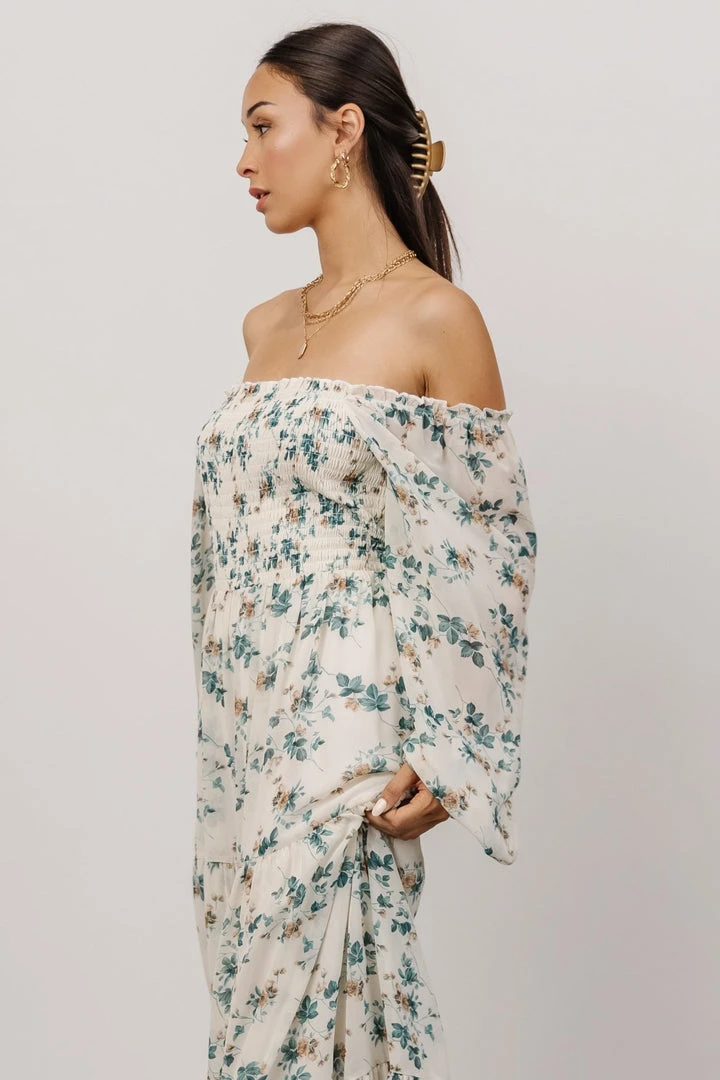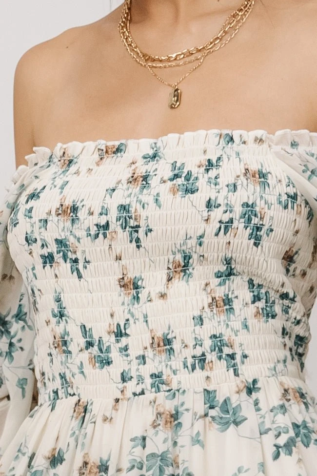 BB Custom Dresses Isabela Smocked Maxi Dress | Ivory + Topaz Floral