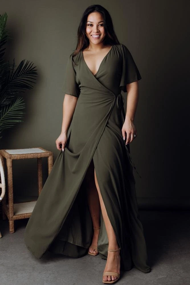 BB Custom Dresses Ivy Wrap Maxi Dress | Olive