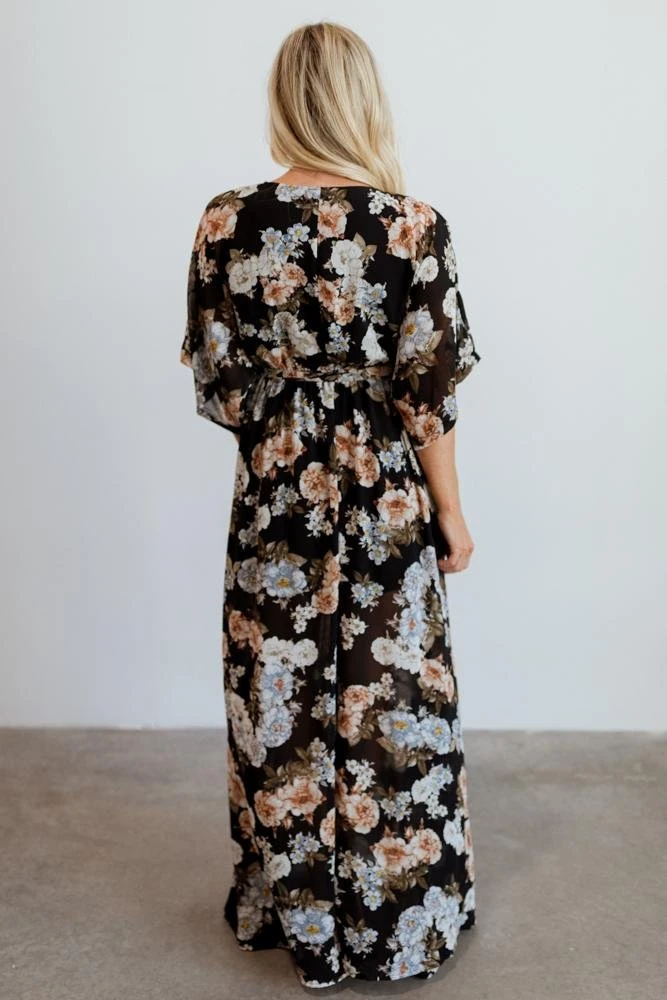 BB Custom Dresses Kia Kimono Maxi Dress | Black Floral