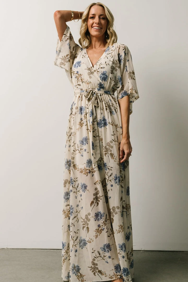 BB Custom Dresses Kia Kimono Maxi Dress | Blue Floral