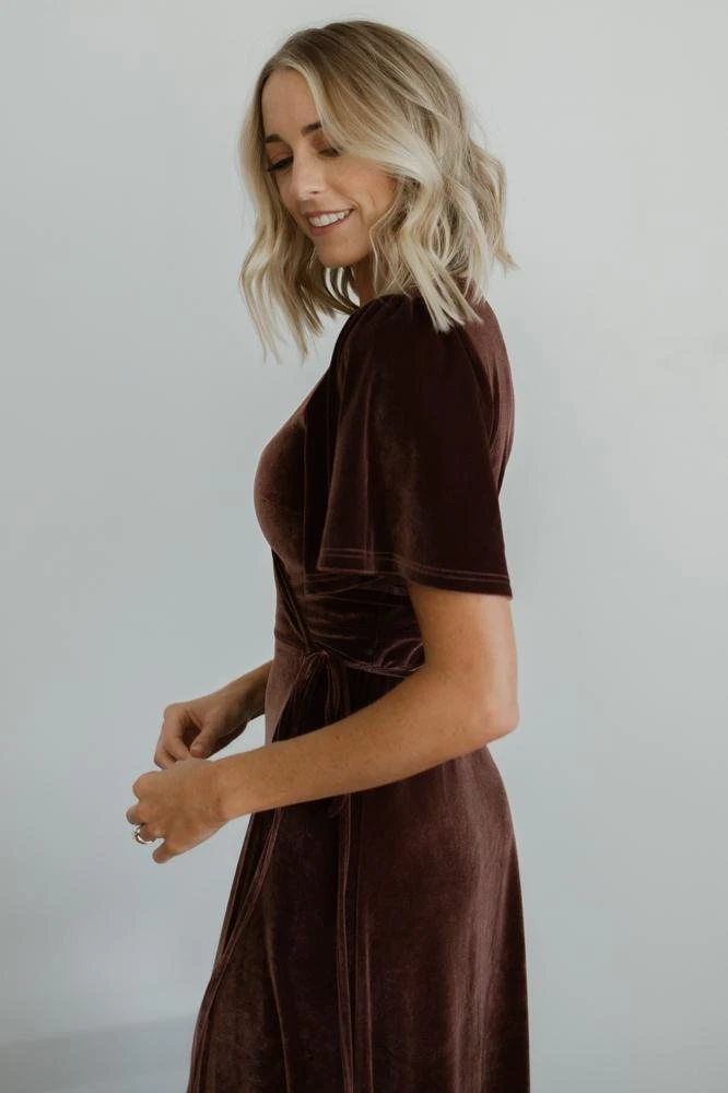 BB Custom Dresses Meghan Velvet Wrap Maxi Dress | Dusty Plum