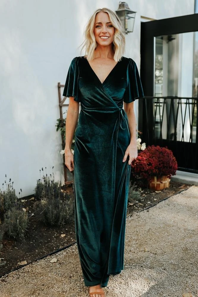 BB Custom Dresses Meghan Velvet Wrap Maxi Dress | Jade