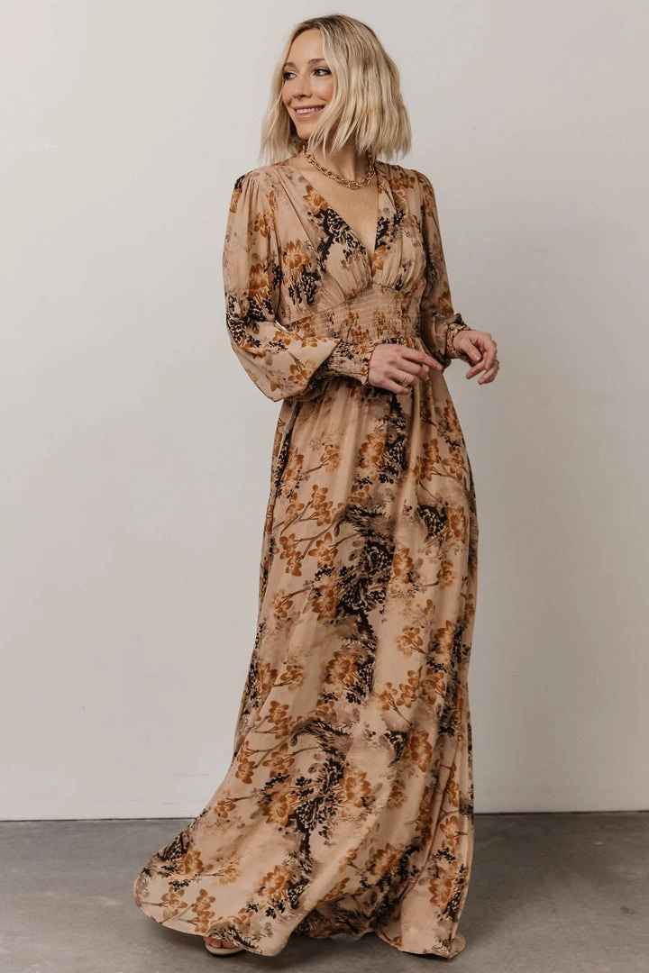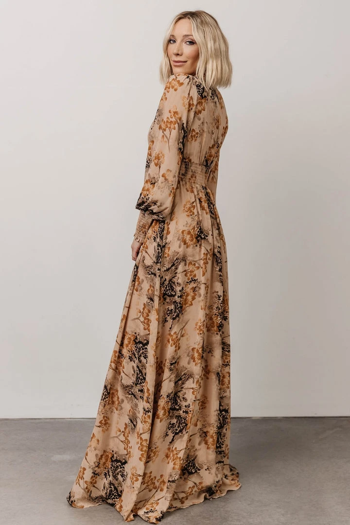 BB Custom Dresses Olivia Maxi Dress | Camel Print