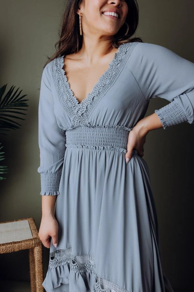 BB Custom Dresses Pippa Ruffle Maxi Dress | Dusty Blue