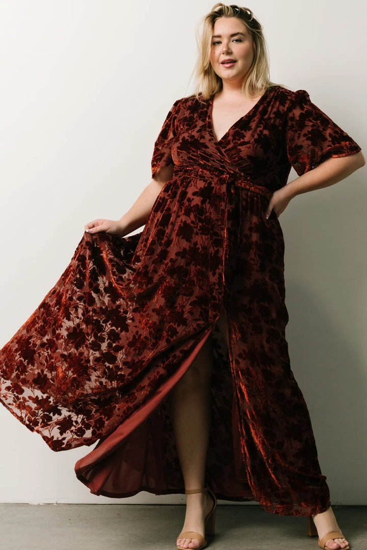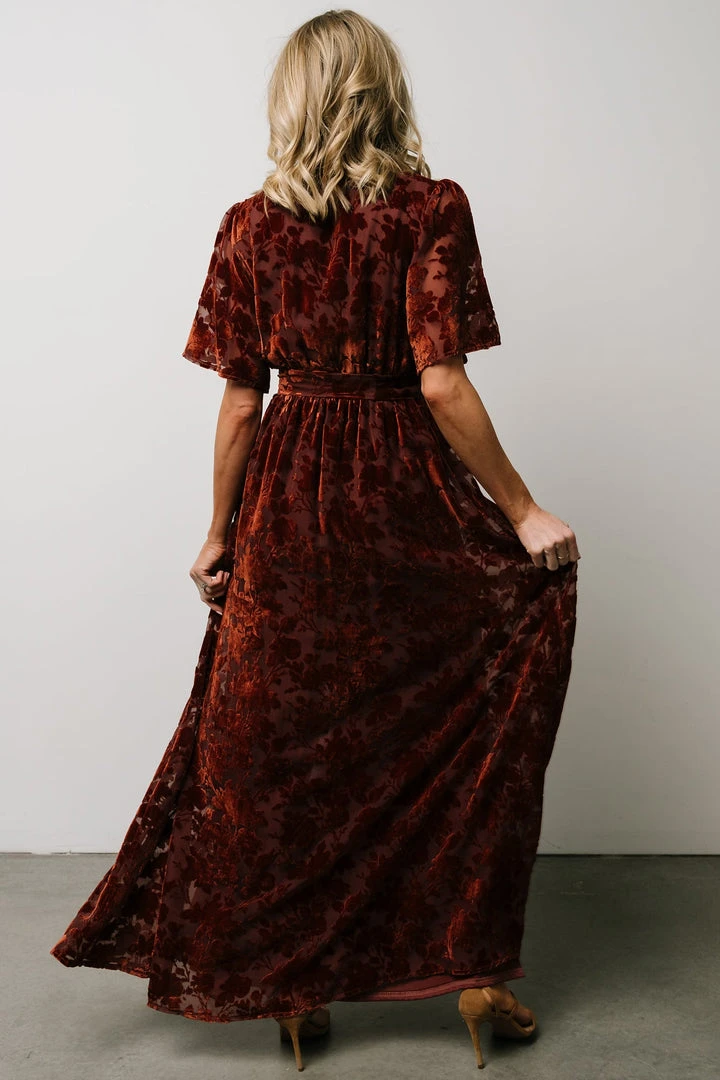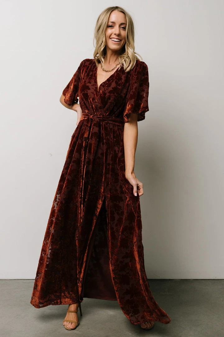 BB Custom Dresses Uma Velvet Maxi Dress | Copper Floral
