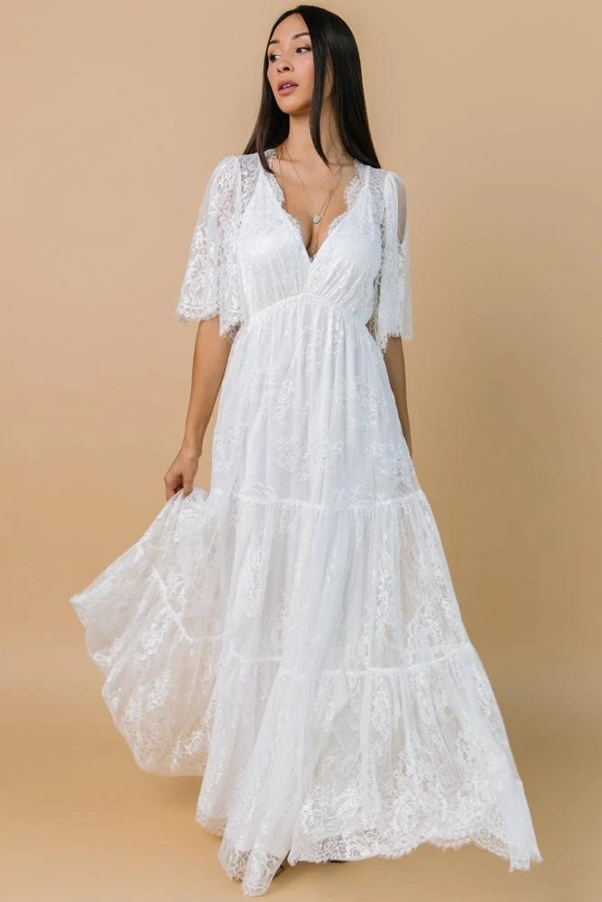 BB Custom Dresses Wanderlust Lace Maxi Dress | White