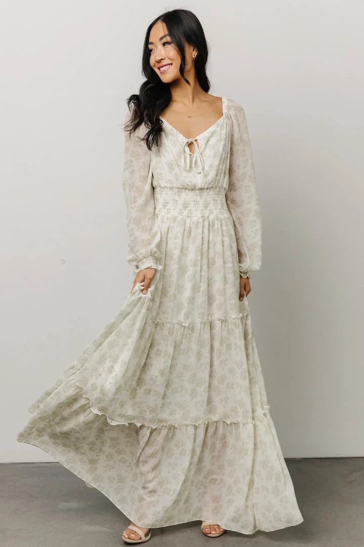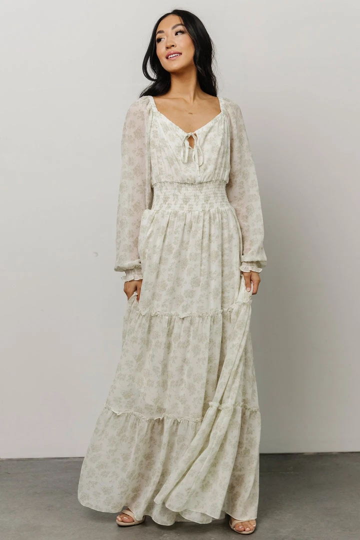 BB Custom Eden Smocked Maxi Dress | Sage Print Dresses
