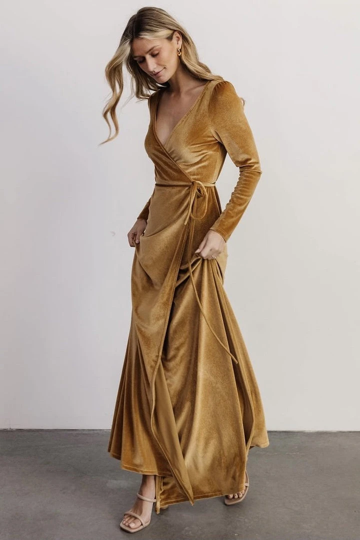 BB Custom Esmerelda Velvet Wrap Maxi Dress | Gold