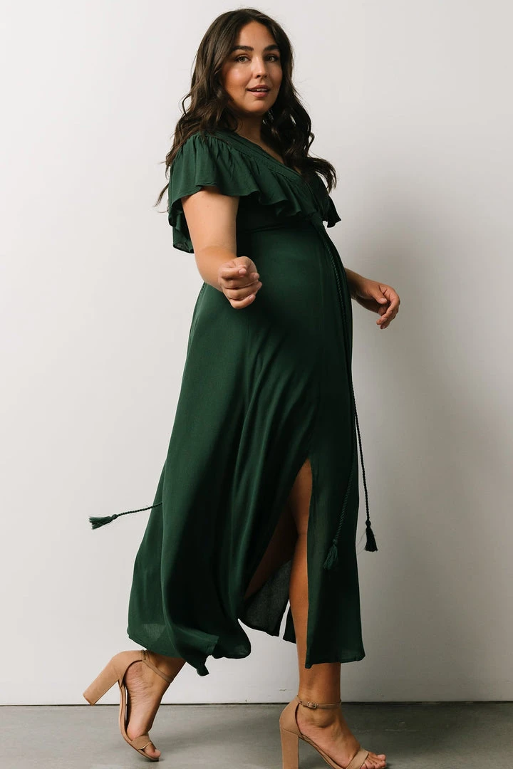 BB Custom Jennifer Deep V Maxi Dress | Dark Green