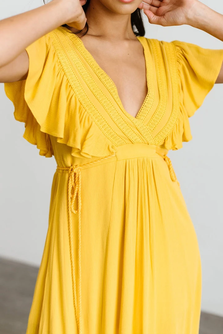 BB Custom Jennifer Deep V Maxi Dress | Mustard Dresses
