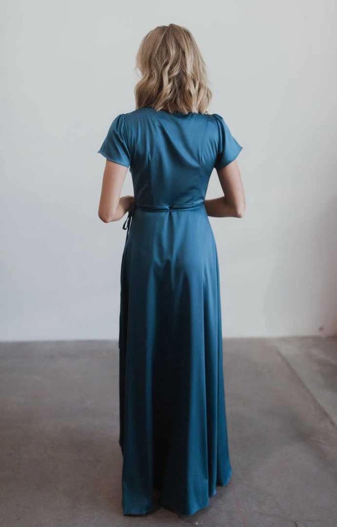BB Custom Krystal Satin Wrap Gown | Blue Dresses