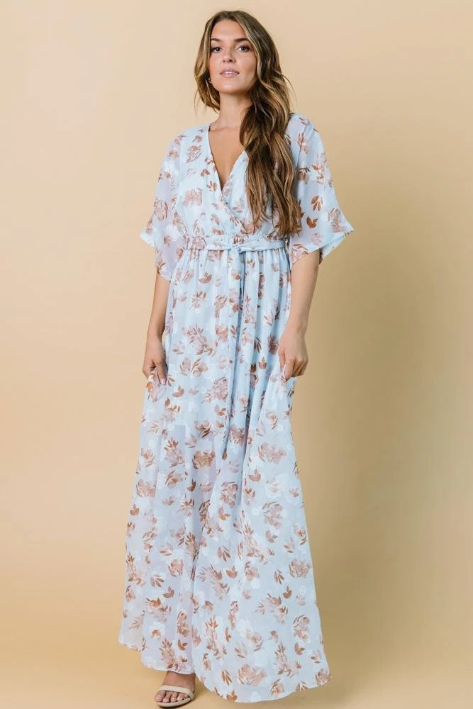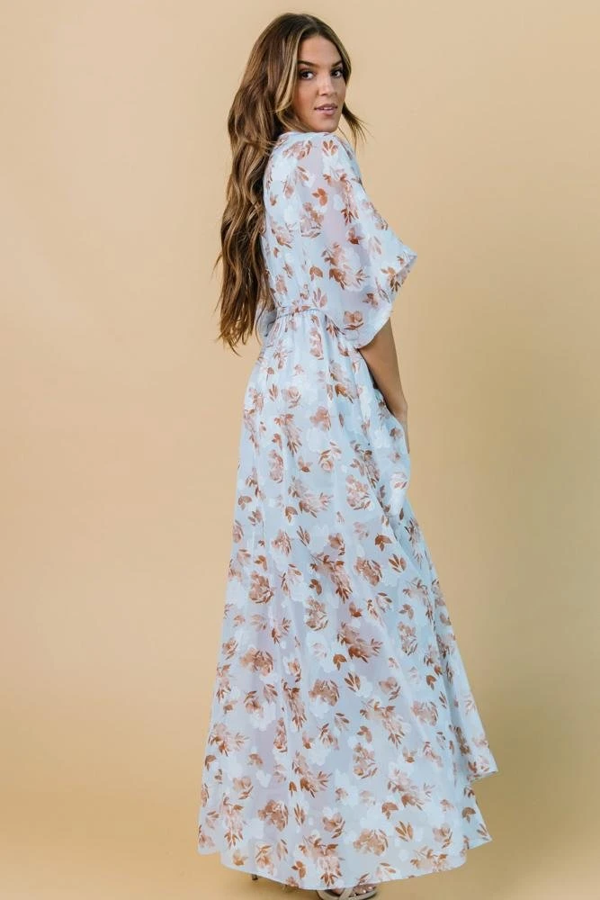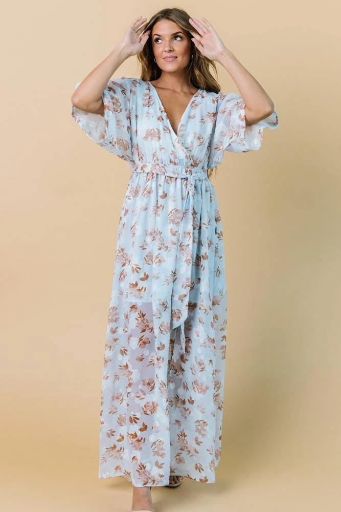 BB Custom Luca Jacquard Kimono Maxi Dress | Blue Camel
