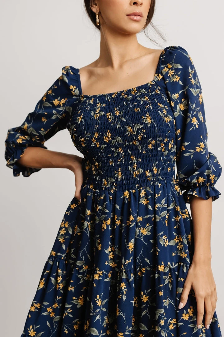BB Custom Marta Smocked Midi Dress | Navy Floral Dresses