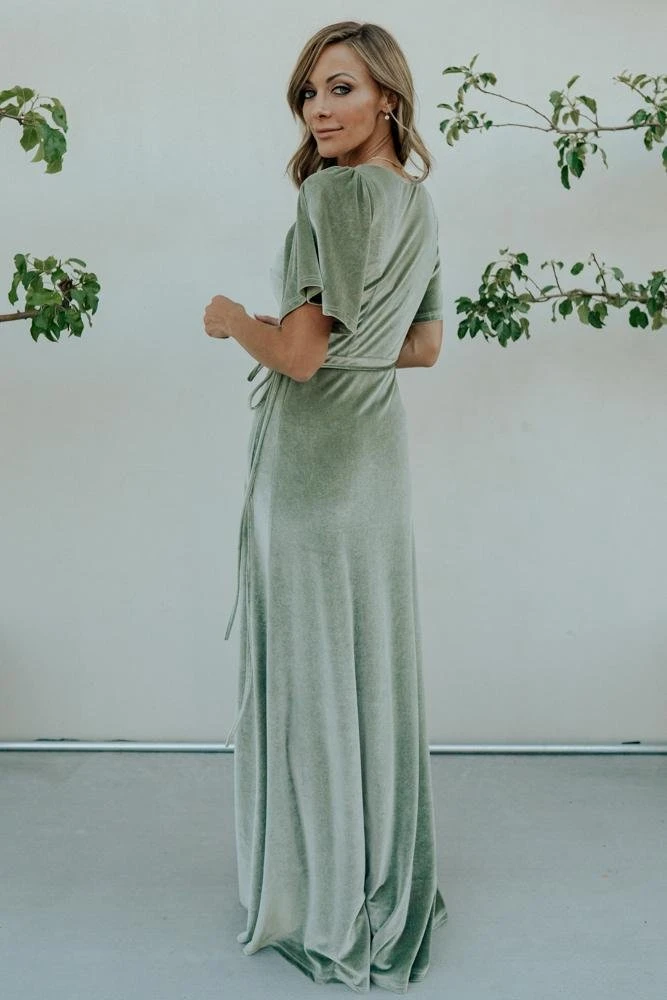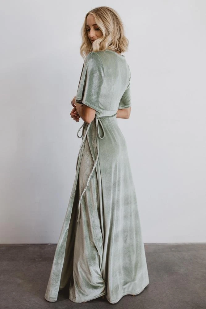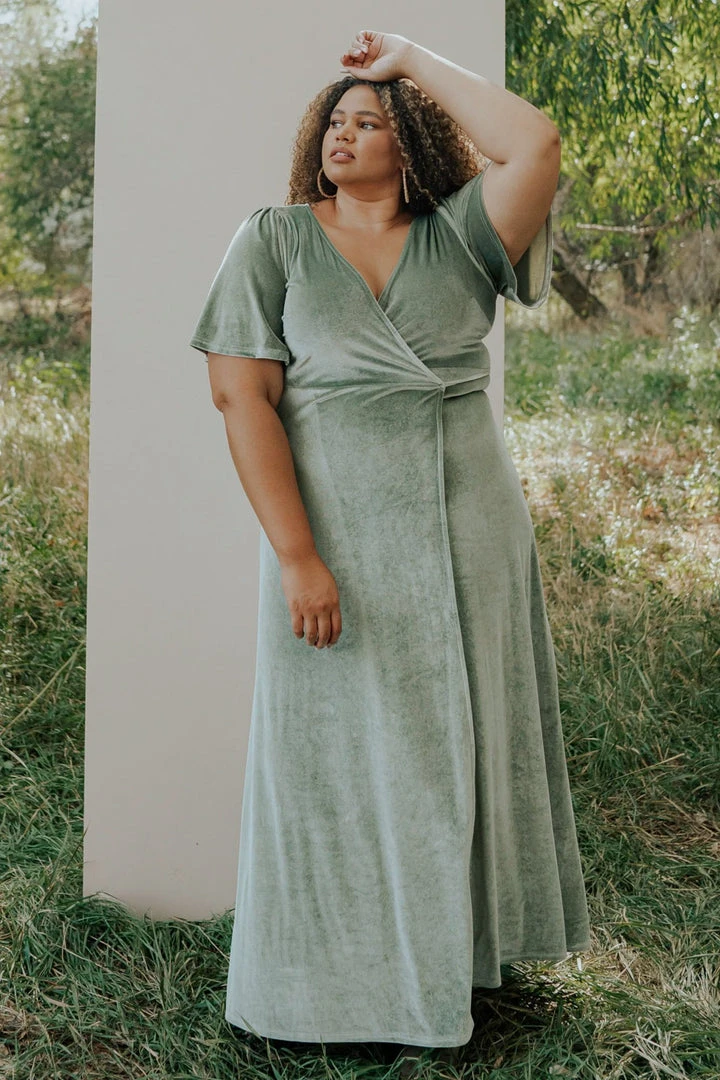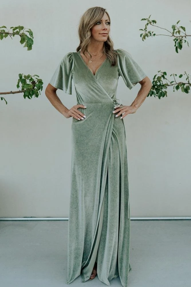 BB Custom Meghan Velvet Wrap Maxi Dress | Sage Dresses