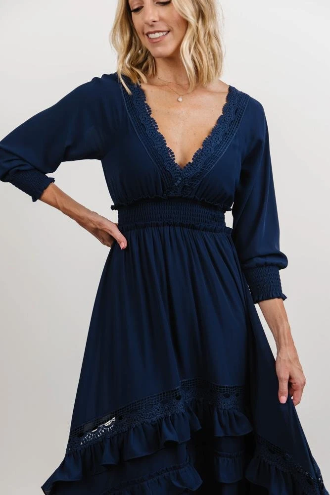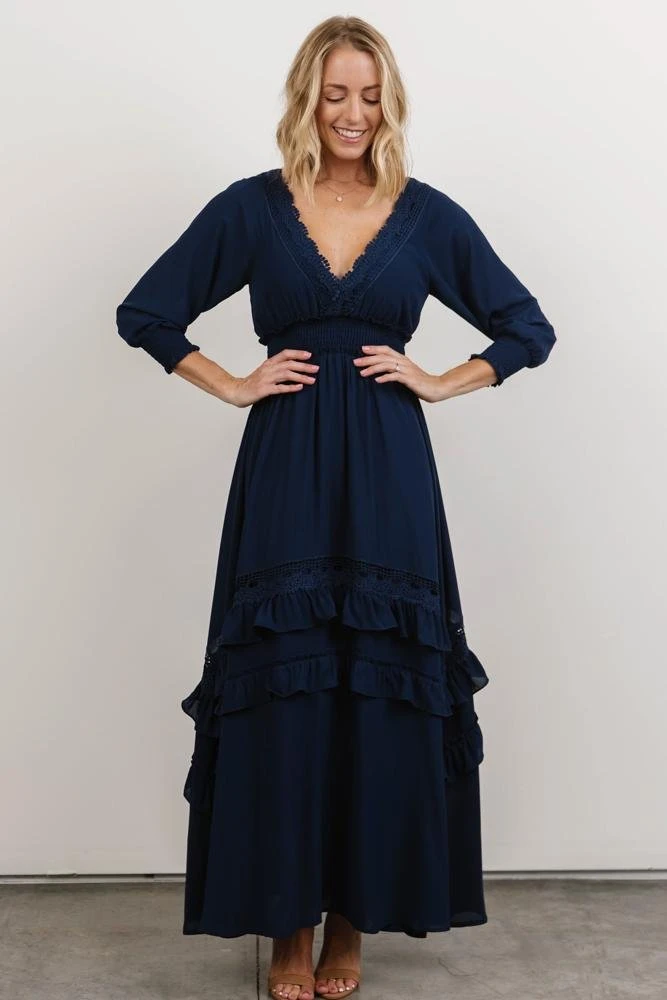 BB Custom Pippa Ruffle Maxi Dress | Navy