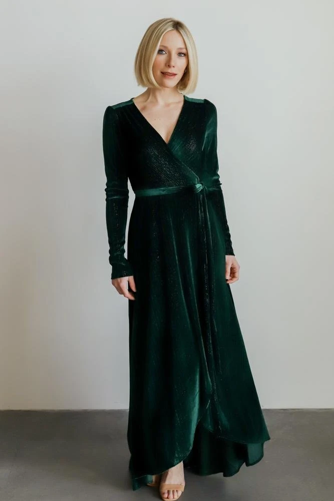 BB Custom Serena Shimmer Velvet Wrap Dress | Forest Dresses