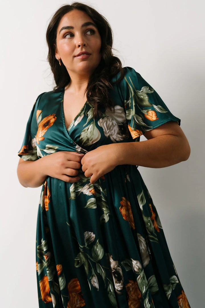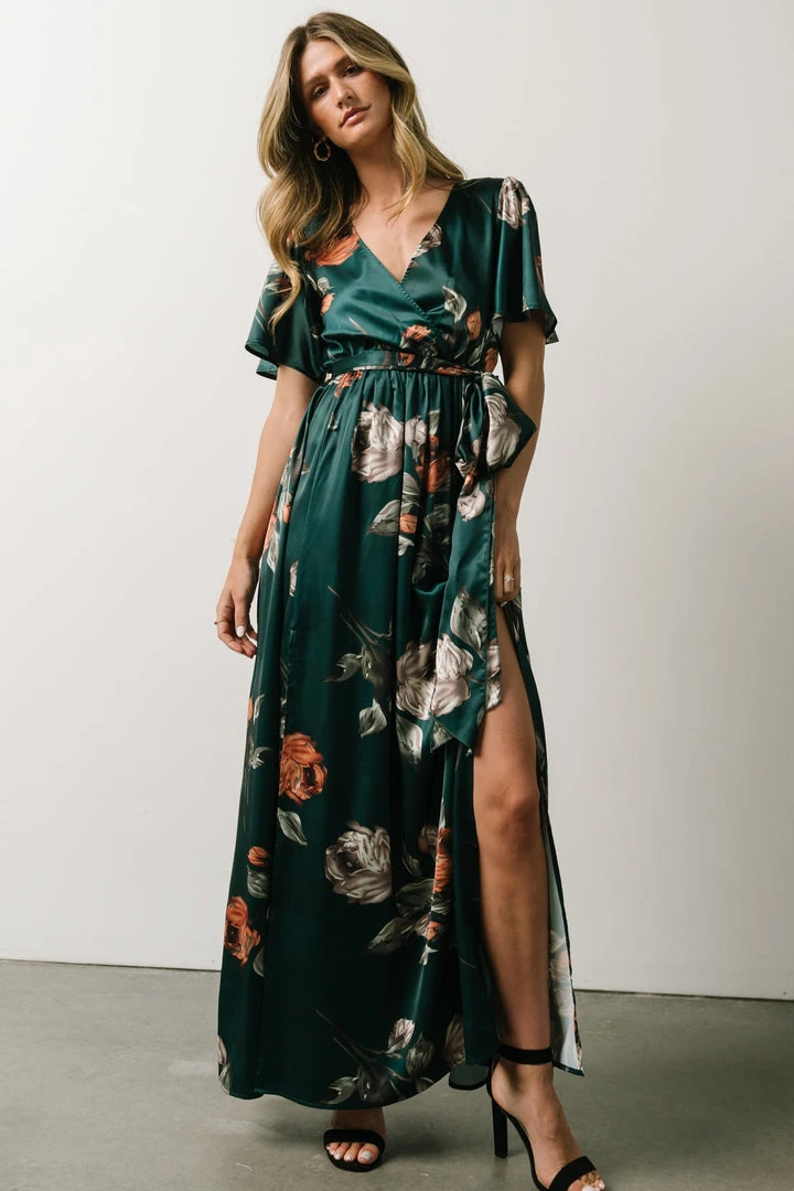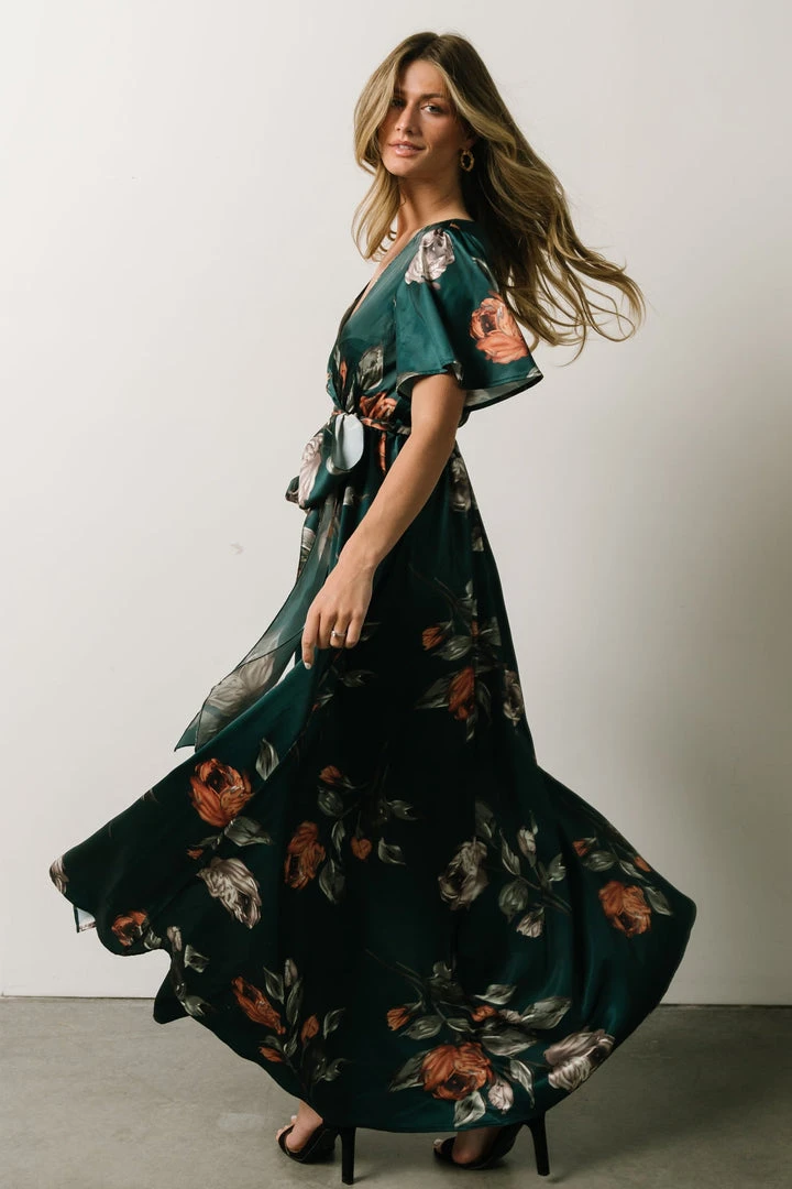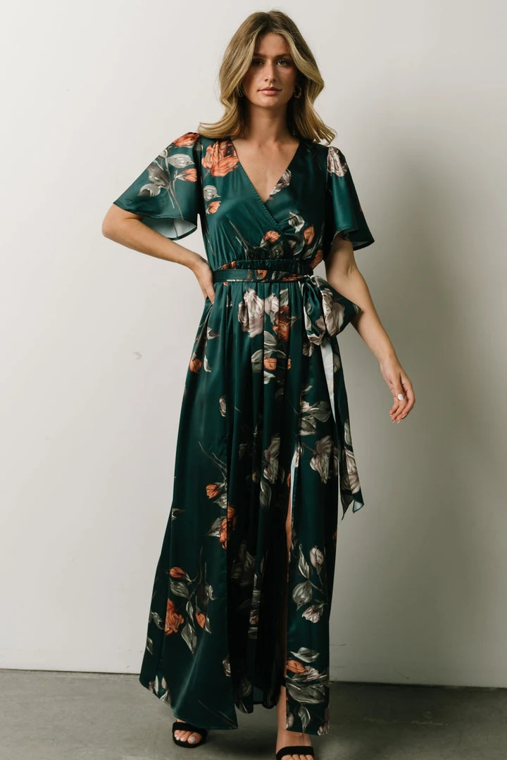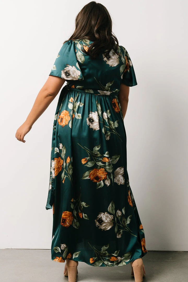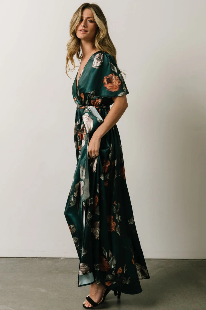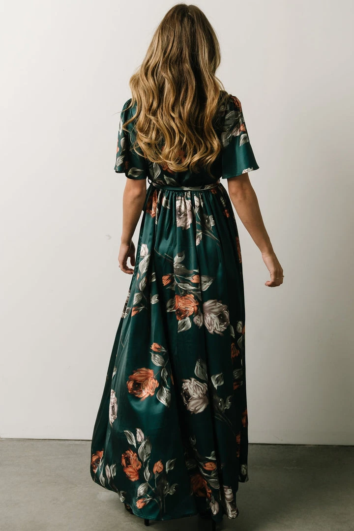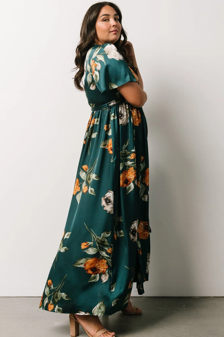 BB Custom Sicily Satin Maxi Dress | Deep Topaz Floral