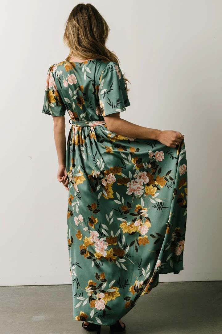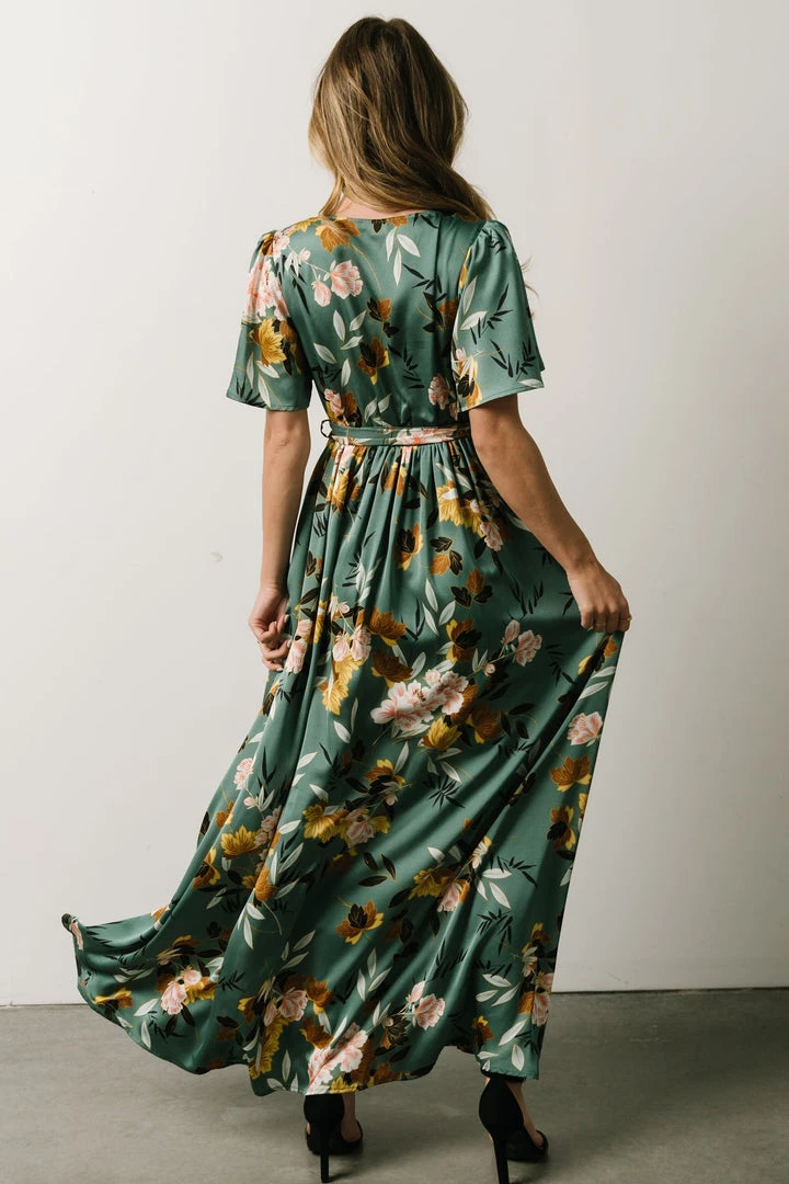 BB Custom Sicily Satin Maxi Dress | Eucalyptus Floral