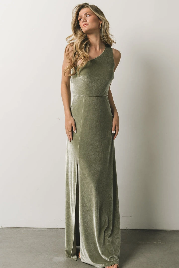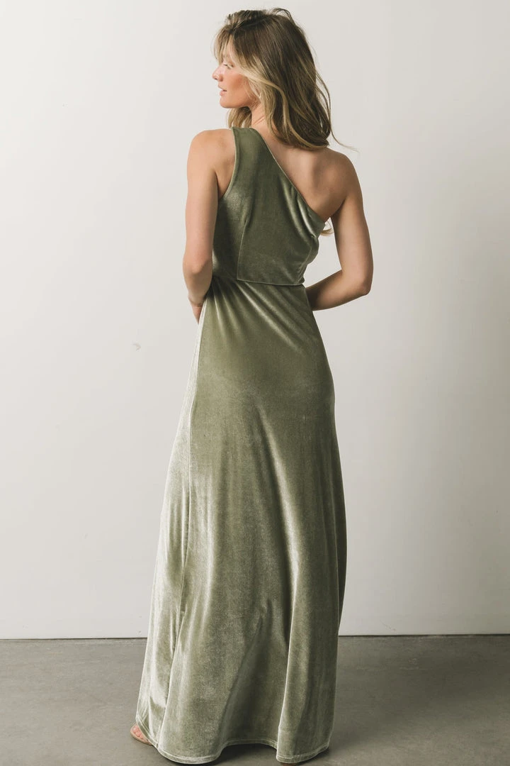 BB Custom Tatiana Velvet One Shoulder Maxi Dress | Sage Dresses