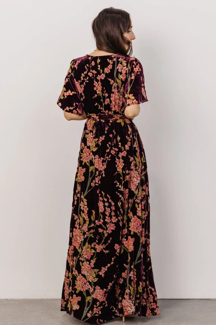 BB Custom Uma Velvet Maxi Dress | Plum Floral Dresses