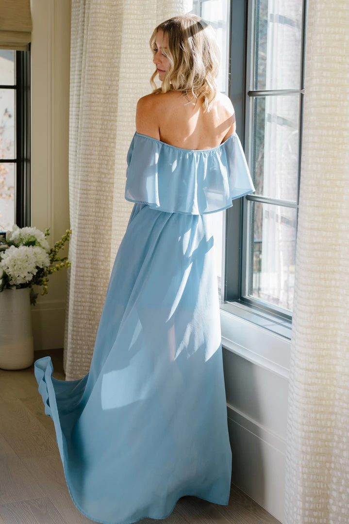BB Custom Victoria Off Shoulder Maxi Dress | Light Blue