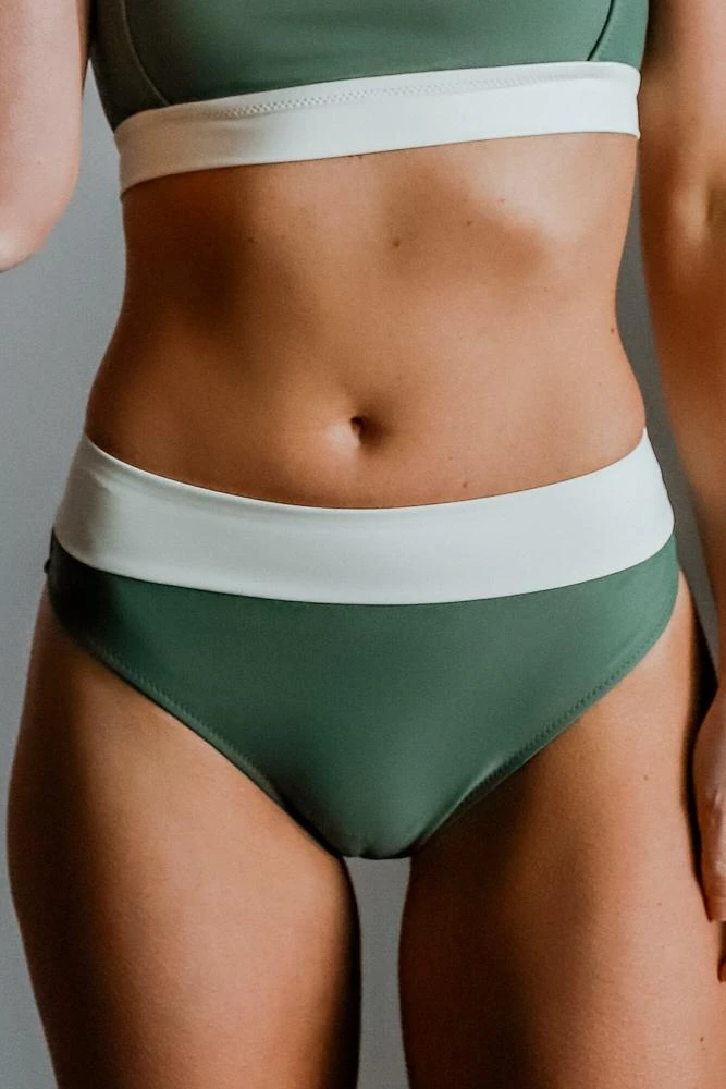 Final sale. Trend alert! The color of the season is here in one of our favorite bikini styles. The green hue is sure to flatter all skin tones, and these mid rise, medium coverage bottoms check all the boxes.Â