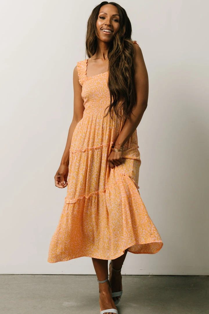 BS Zella Smocked Midi Dress | Orange + Pink Print