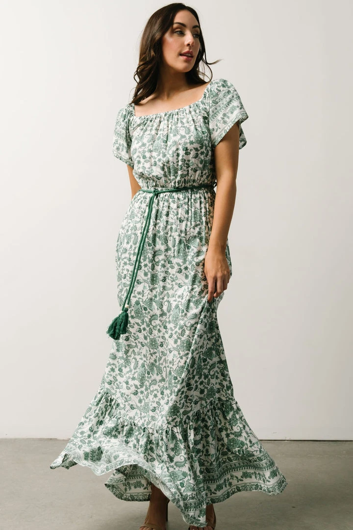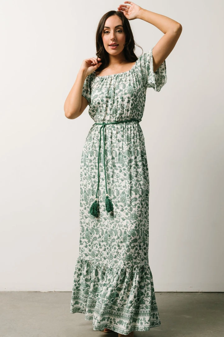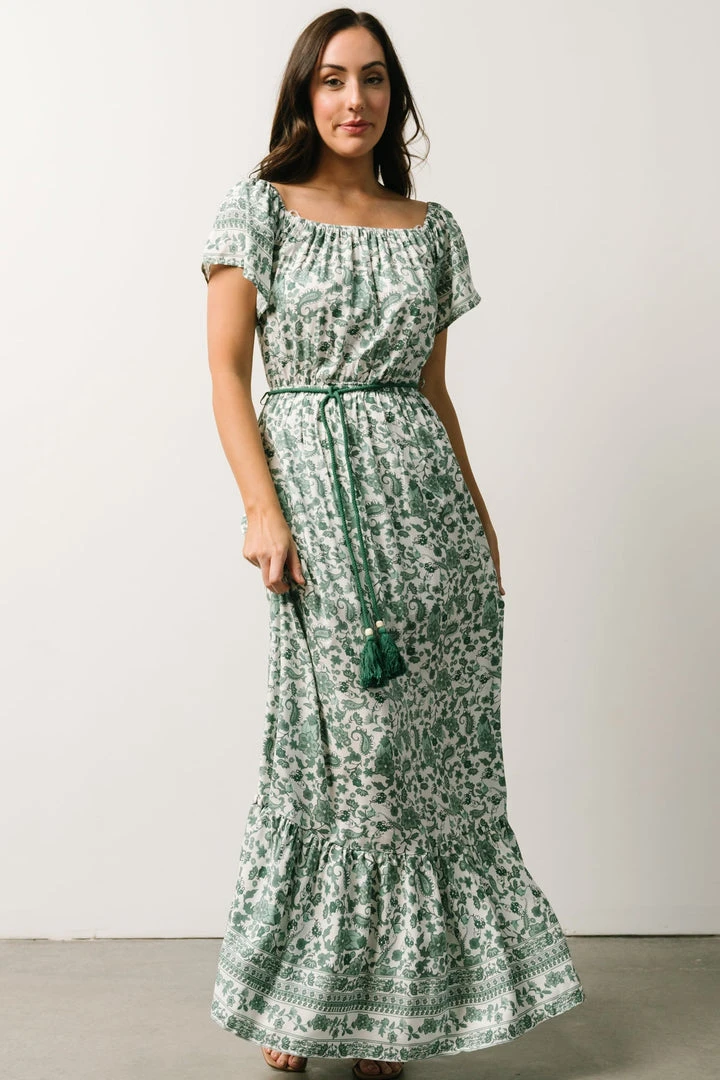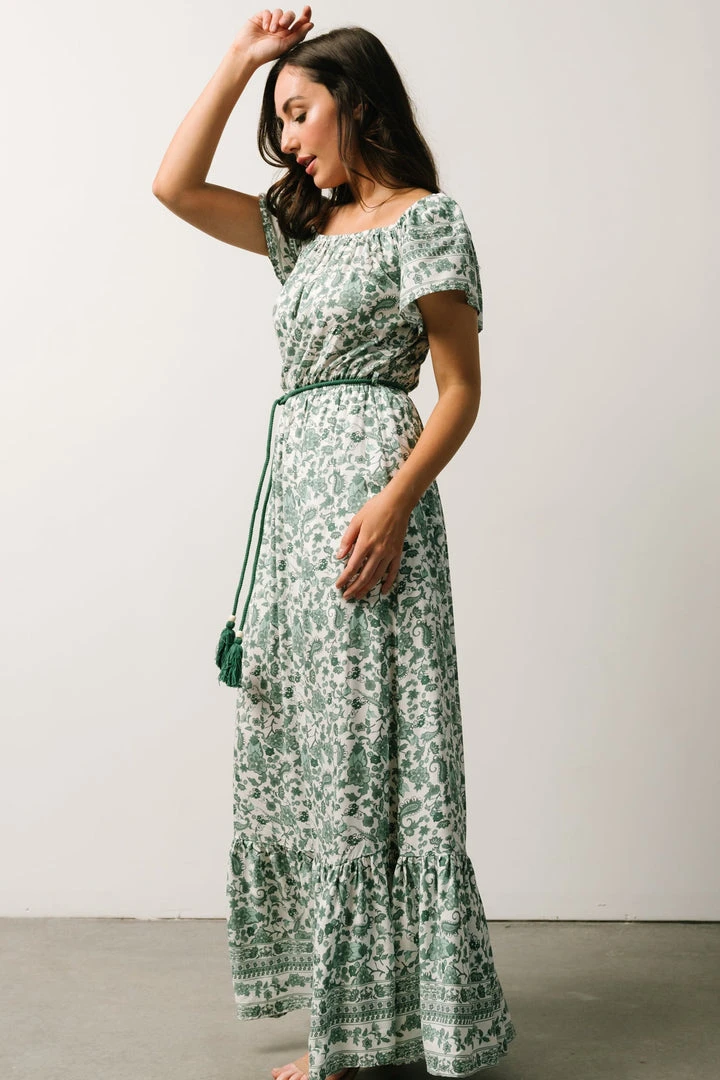 DD Dresses Rosemary Tassel Tie Maxi Dress | Green Floral