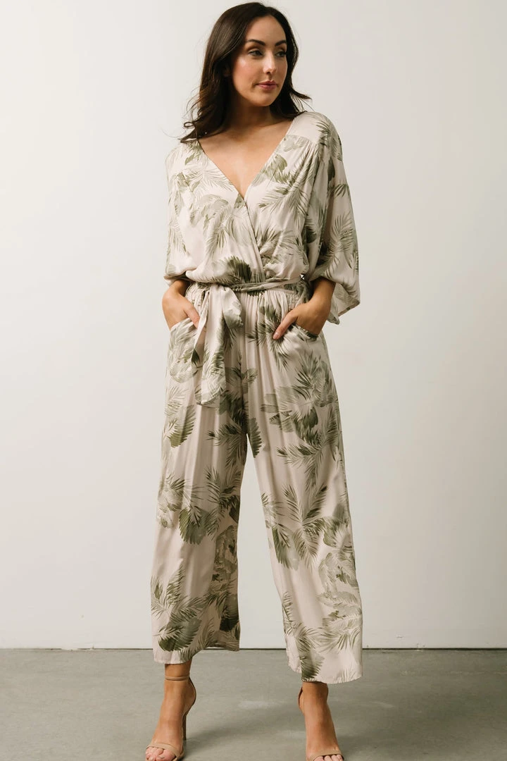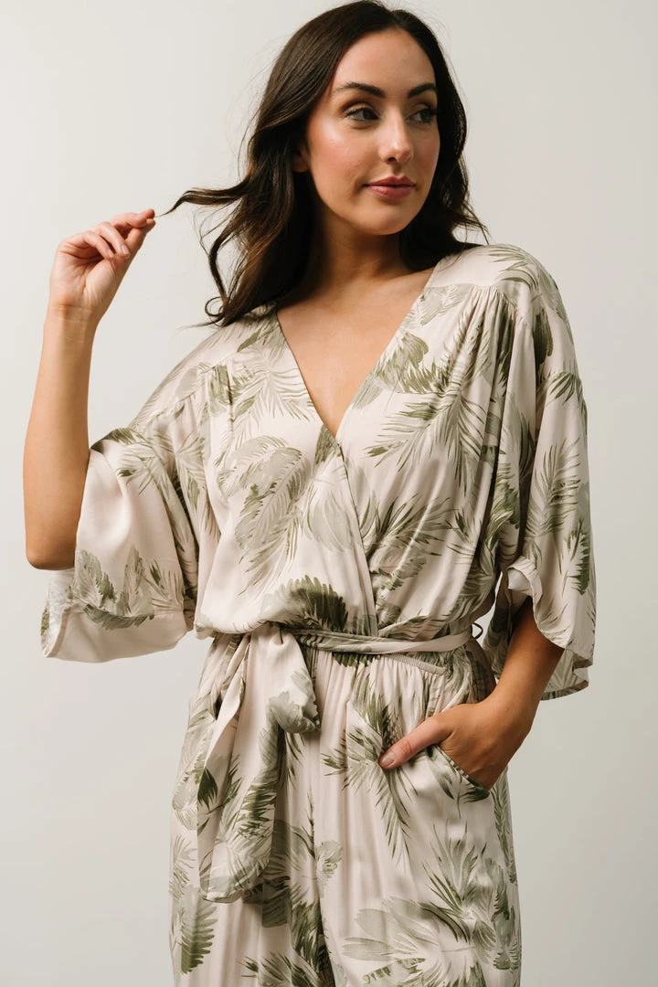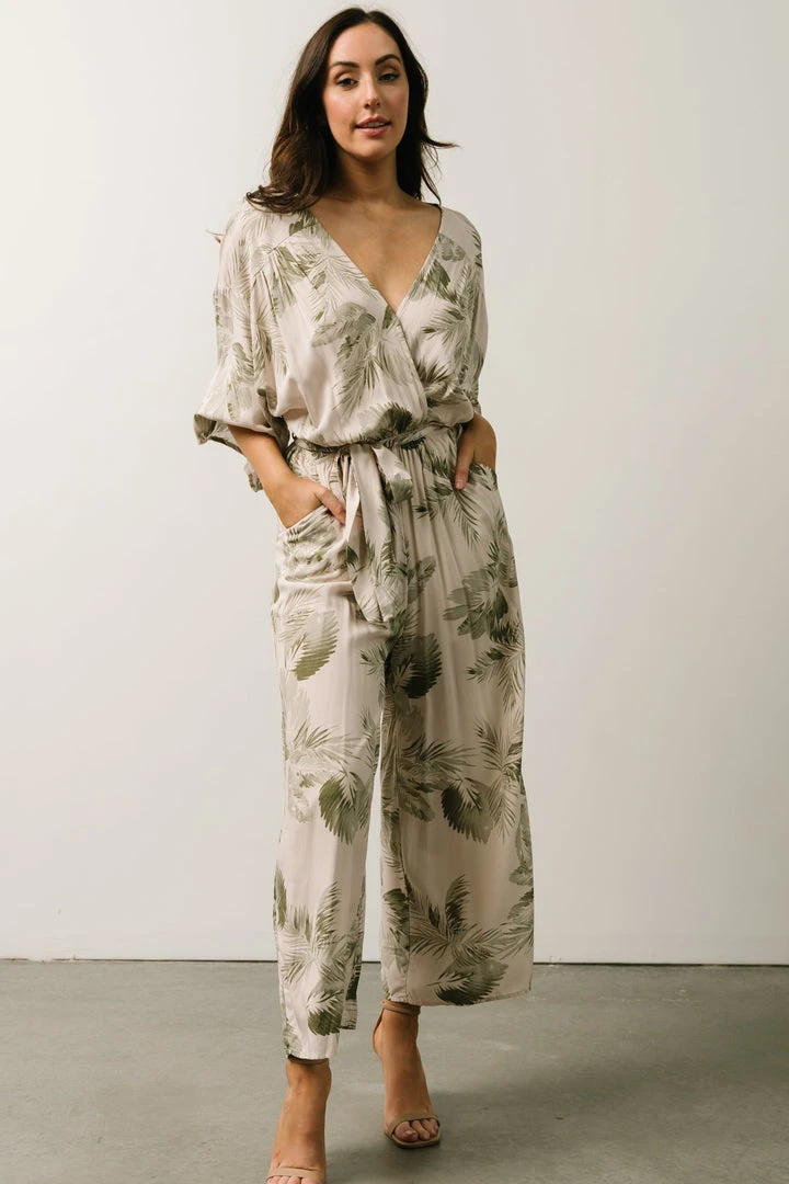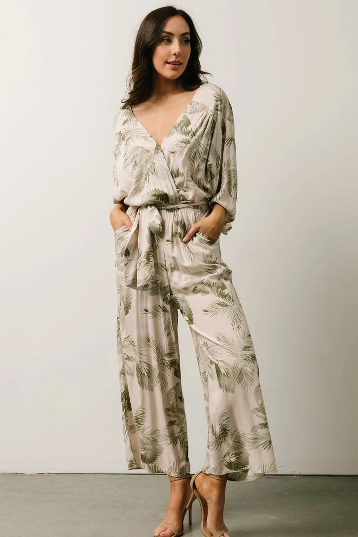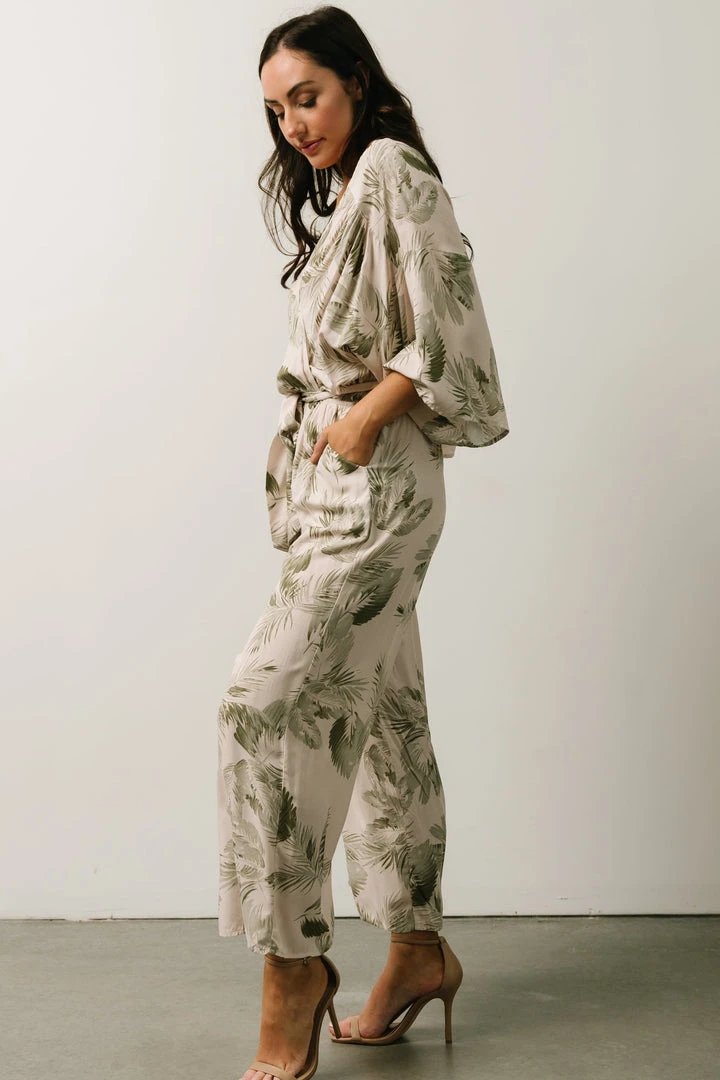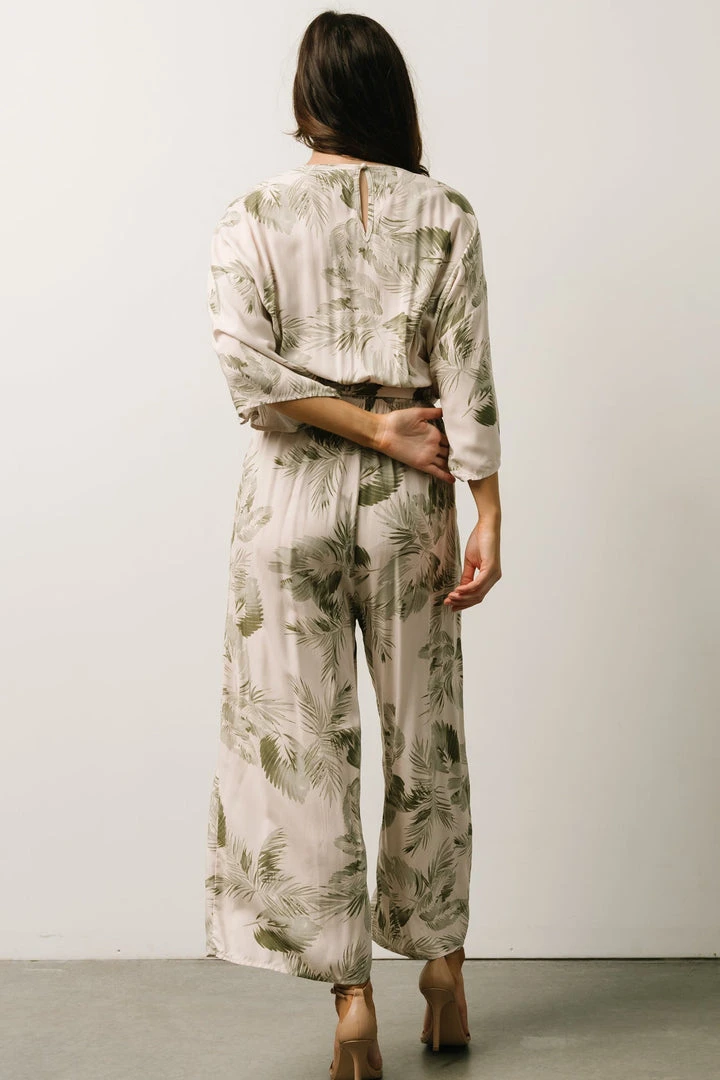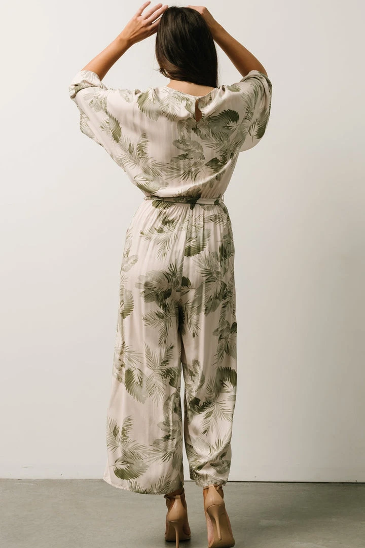 DF Maxwell Jumpsuit | Cream + Sage Palm Print