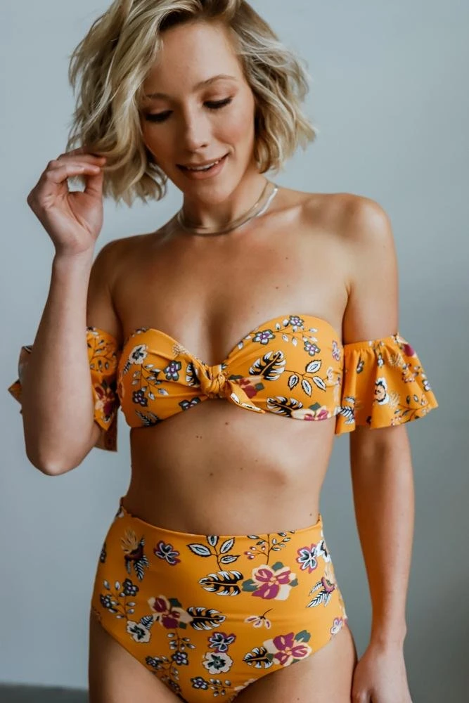FINAL SALE. This dainty yellow floral top is fun, and flirty! The ruffle sleeves add the perfect flare to this piece!Â