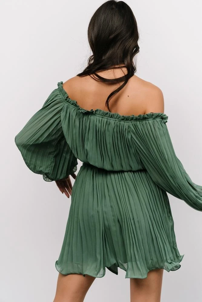 FT Aubrey Off Shoulder Pleated Mini Dress | Green