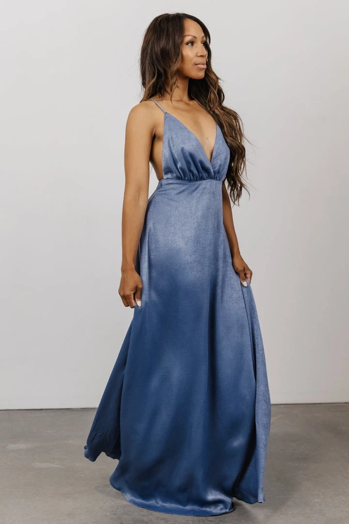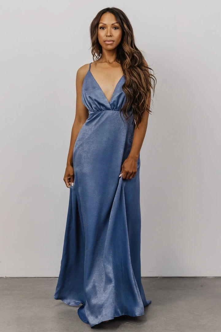 FT Dresses Dover Satin Maxi Dress | Slate Blue