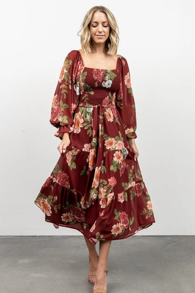 FT Dresses Vyn Tiered Midi Dress | Burgundy Floral