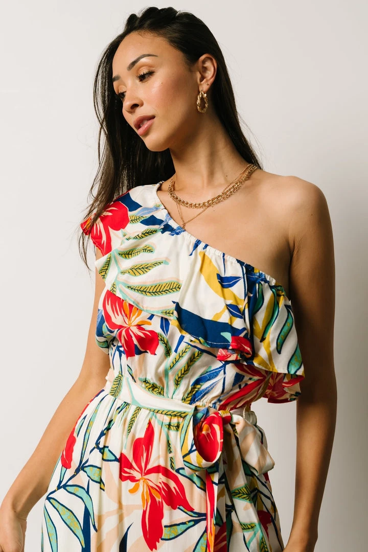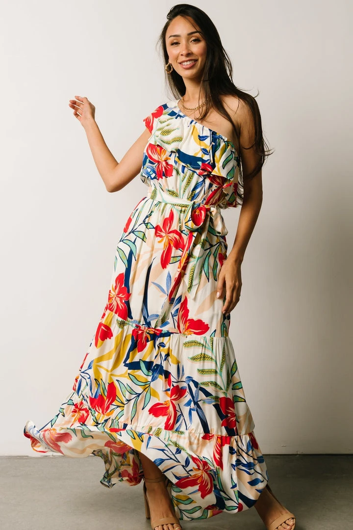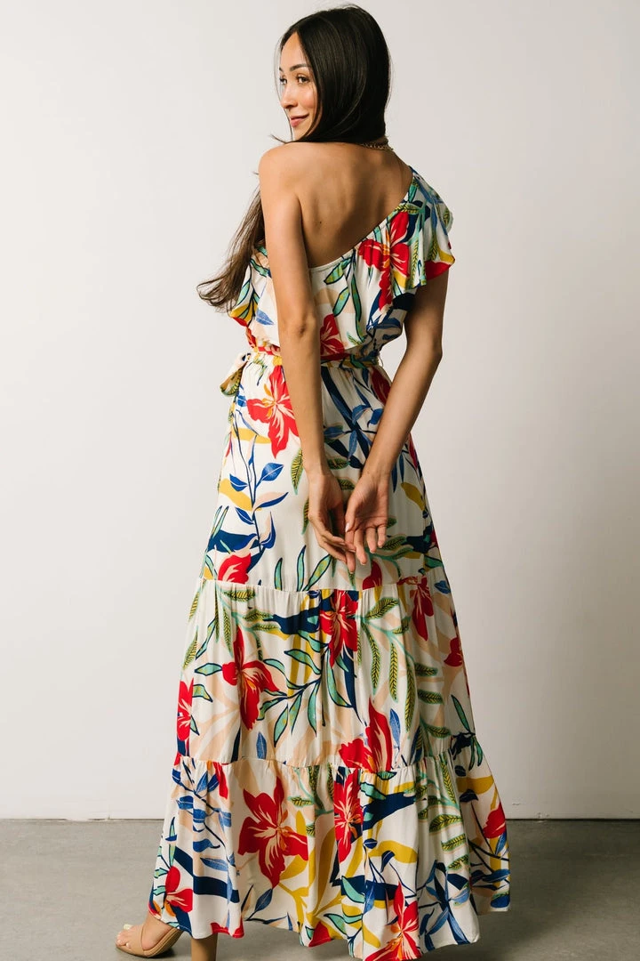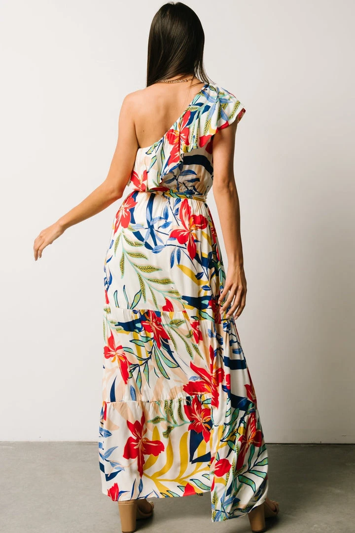FT Jillian One Shoulder Maxi Dress | Multi Print Dresses