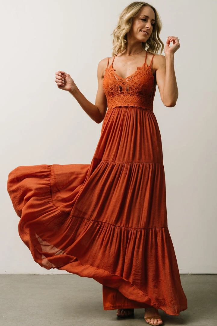FT Summerlin Lace Top Maxi Dress | Rust