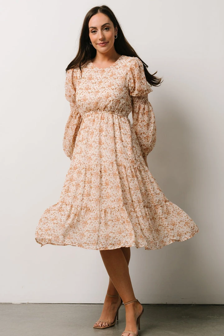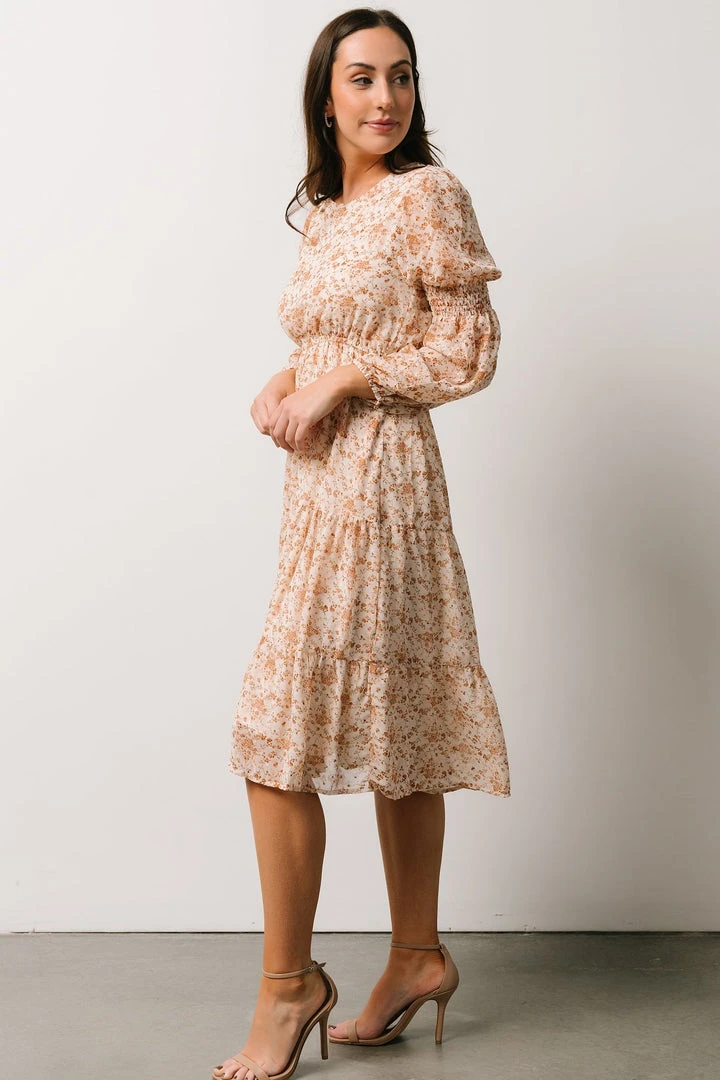 HAY Brooklyn Tiered Midi Dress | Taupe Floral