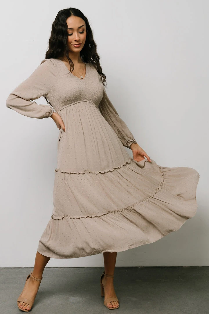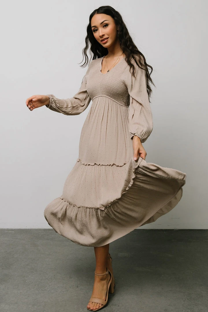 HAY Dresses Marcus Tiered Dotted Midi Dress | Beige