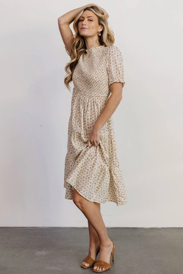 HAY Skylar Smocked Midi Dress | Yellow Floral