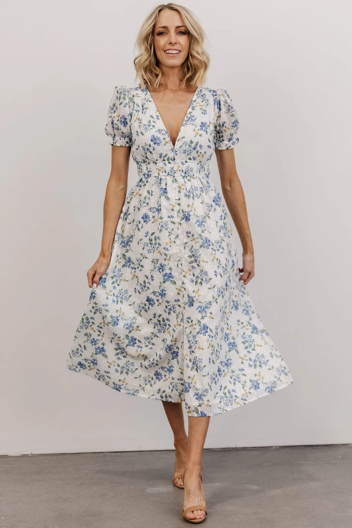 IBS Blakely Eyelet Midi Dress | Blue + White Floral Dresses
