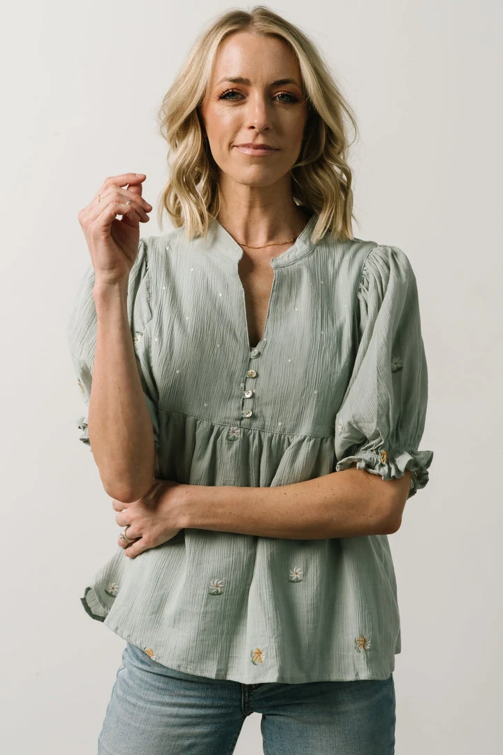 IL Bernadette Embroidery Top | Light Sage Vacation