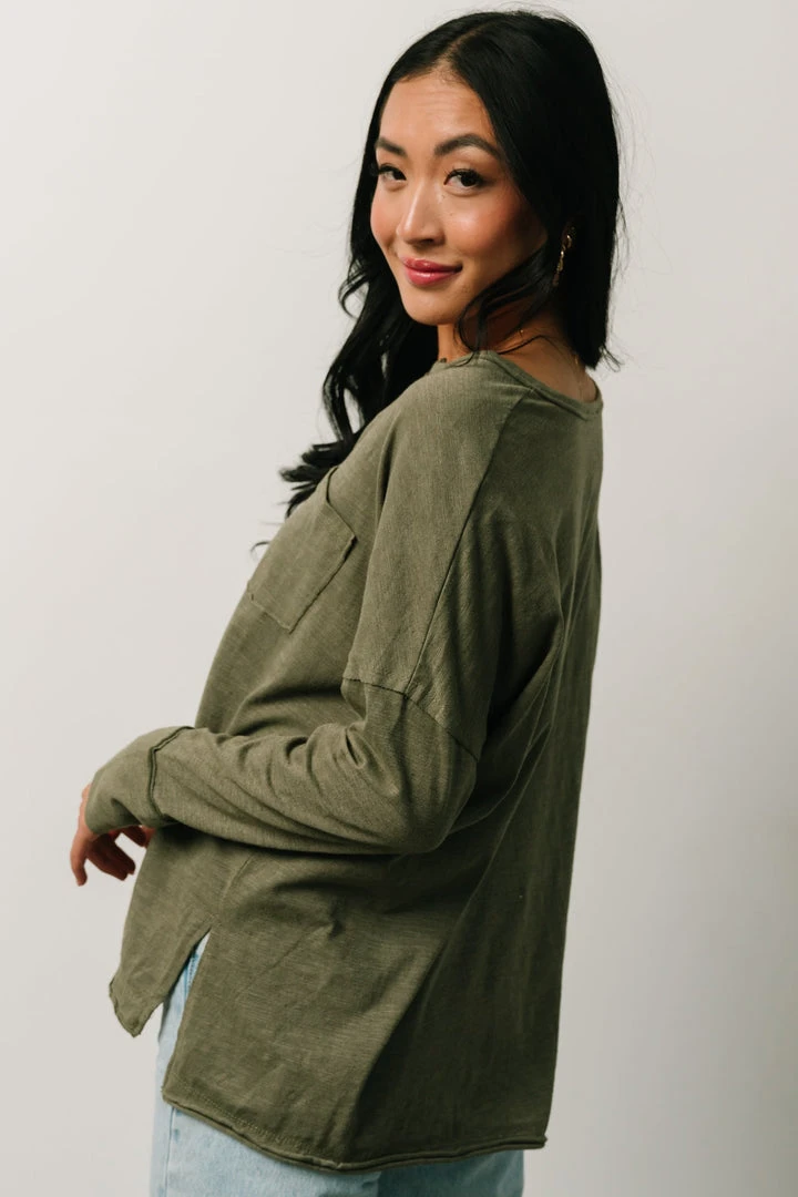 IL Boho Thatcher Long Sleeve Top | Olive