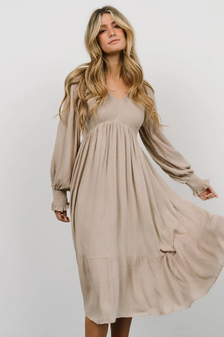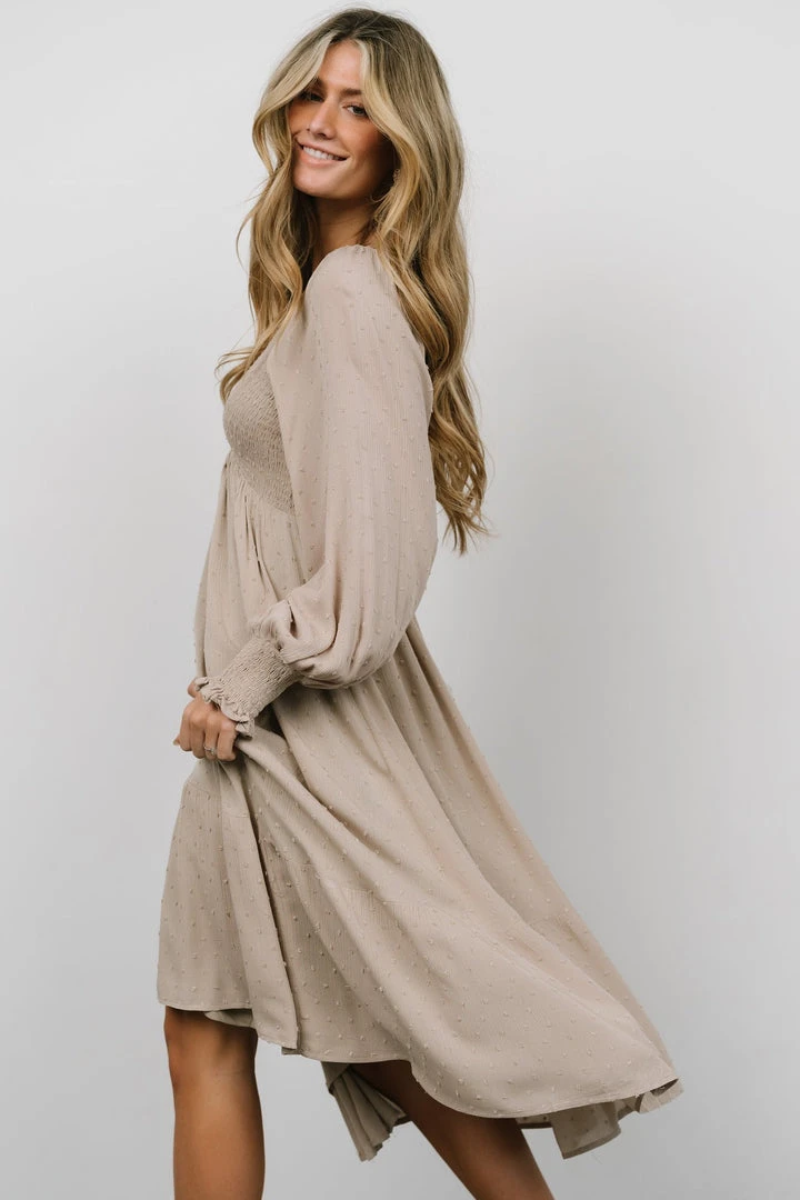 IL Dresses Lainey Smocked Dotted Midi Dress | Beige